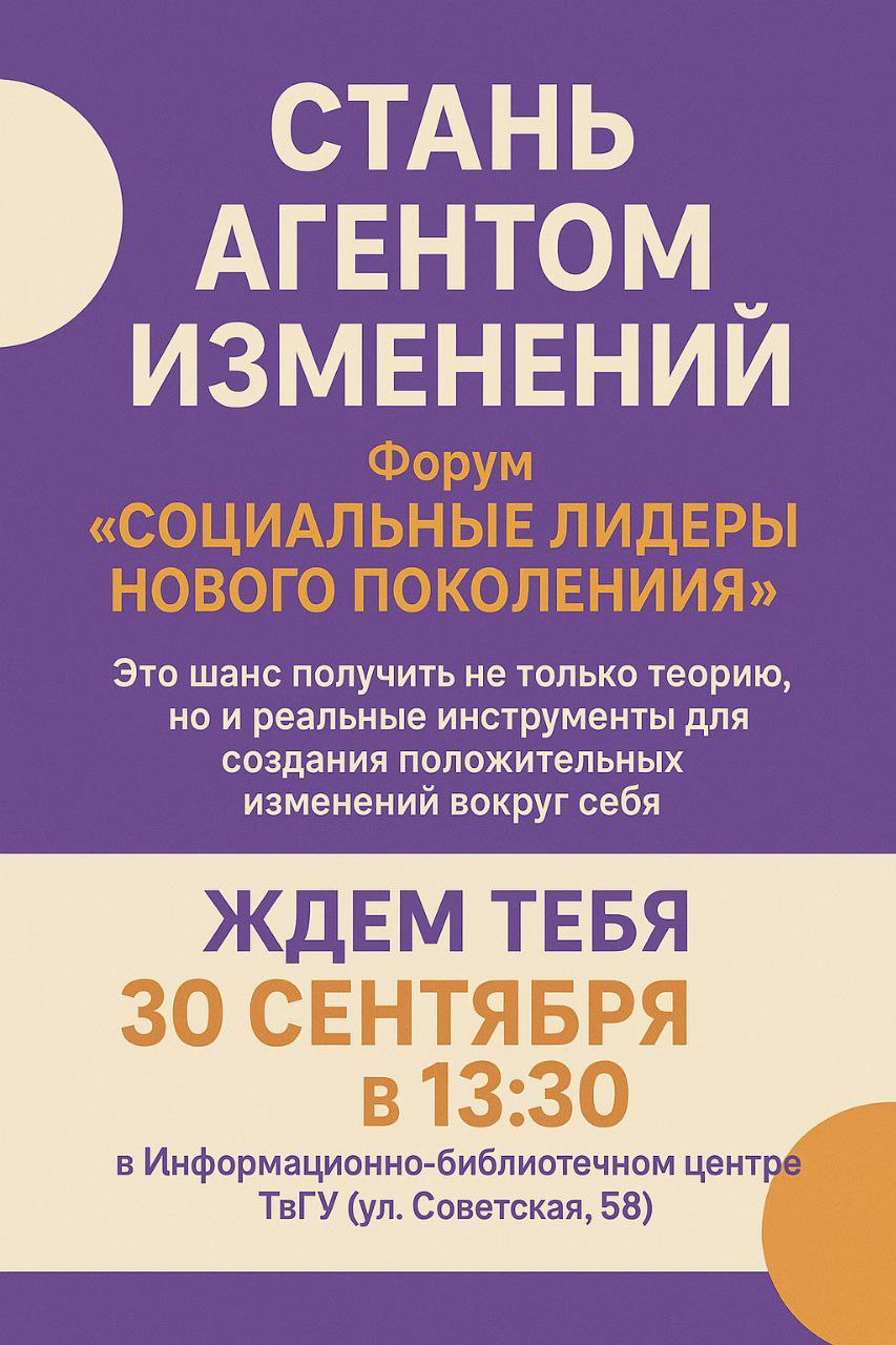 📢 Приглашаем волонтеров и активных горожан 30 сентября на уникальное событие — форум «Социальные лидеры нового поколения». Это не просто лекции, а живая практика: